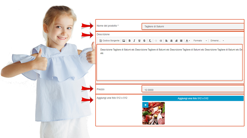 Le verrà fornito un qr-code da stampare ed un account utente con username e password per accedere alla sua area personale per consentirle di inserire e modificare il suo menù con estrema semplicità.
